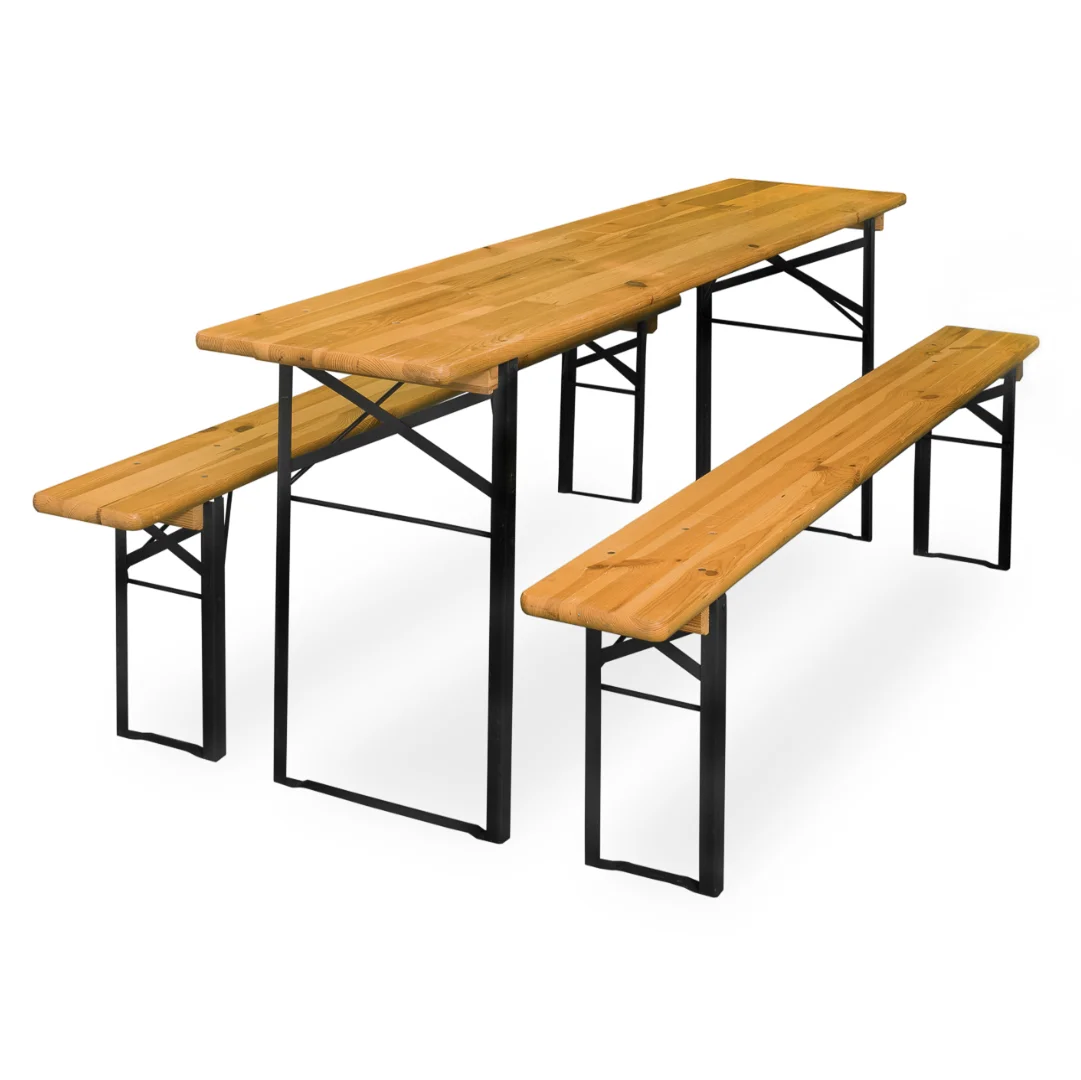 Jede Einheit bietet bequem Platz für bis zu 8 Personen und überzeugt durch ihre stabile und robuste Ausführung. Die Garnituren eignen sich ideal für den Innen- und Außenbereich und sorgen für eine gesellige, traditionelle Atmosphäre.